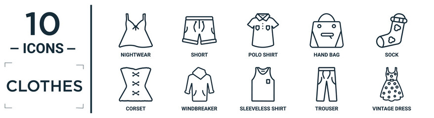 Clothes Linear Icon Set Includes Thin Line Shirt Hat Tracksuit Tshirt Skirt Shorts Pyjamas Icons For Report Presentation Diagram Web Design Beauty Wall Mural Beau Digital Bazaar